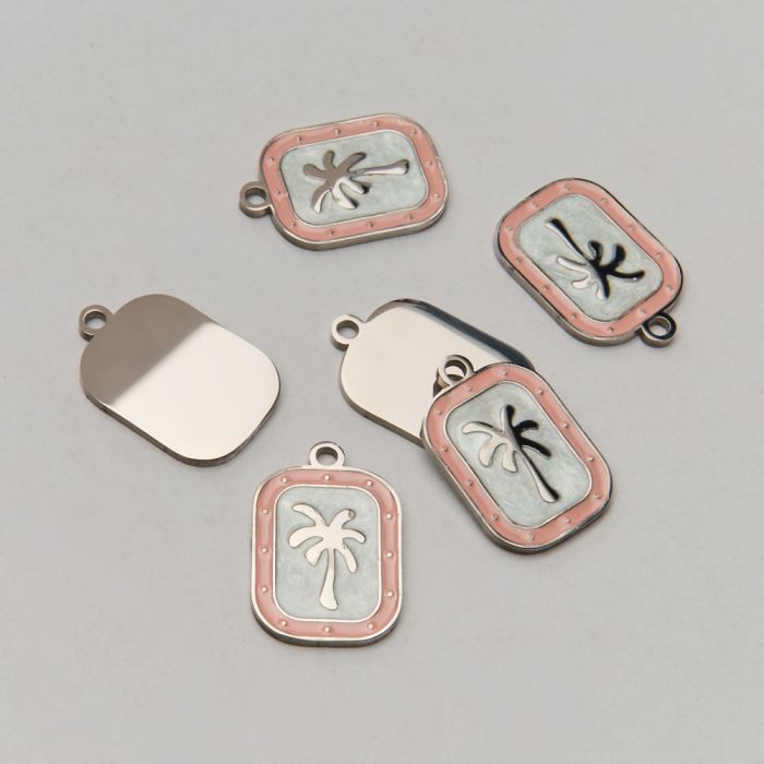 Zawieszka ze stali chirurgicznej emaliowana z palmą w kolorze srebrnym 19,5mm