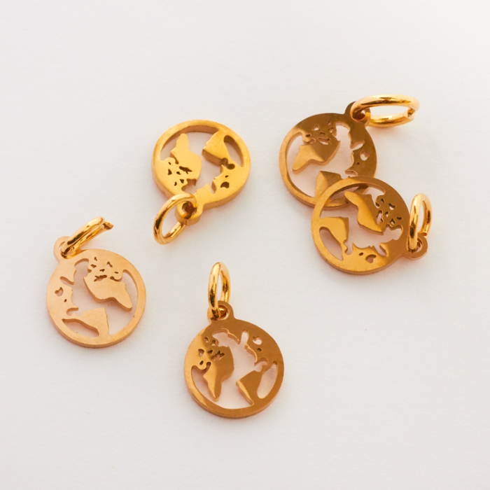 Zawieszka ze stali chirurgicznej globus w kolorze złotym 8,5mm PVD