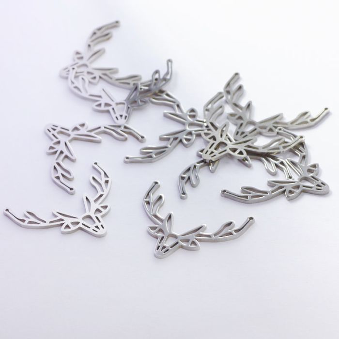 Zawieszka ze stali chirurgicznej głowa jelenia w kolorze srebrnym 24x30mm