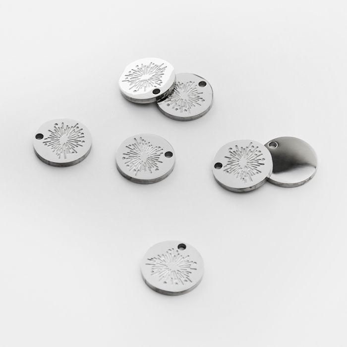 Zawieszka ze stali chirurgicznej grawerowana kółko z dmuchawcem w kolorze srebrnym 12mm