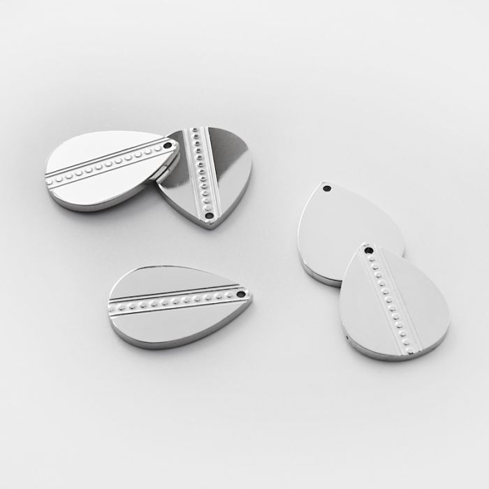 Zawieszka ze stali chirurgicznej grawerowana łezka ze wzorkiem w kolorze srebrnym 19mm