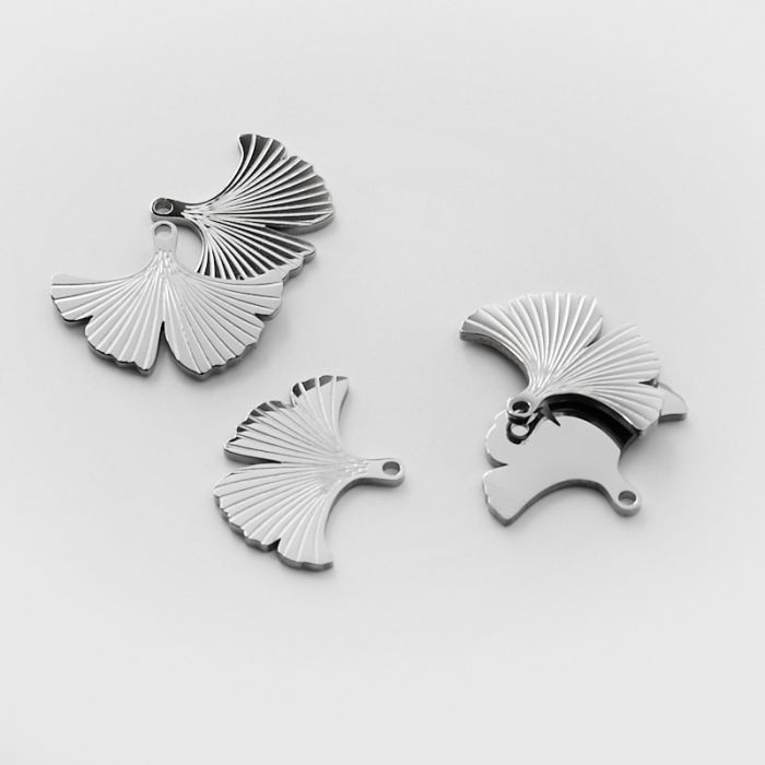 Zawieszka ze stali chirurgicznej grawerowana liść miłorzębu w kolorze srebrnym 13mm