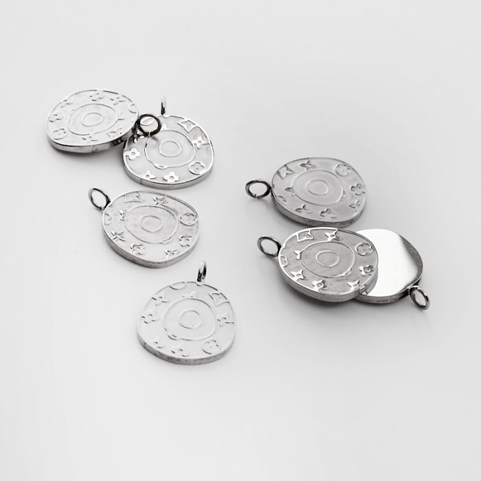 Zawieszka ze stali chirurgicznej grawerowana ozdobna w kształcie owalu w kolorze srebrnym 18,5mm