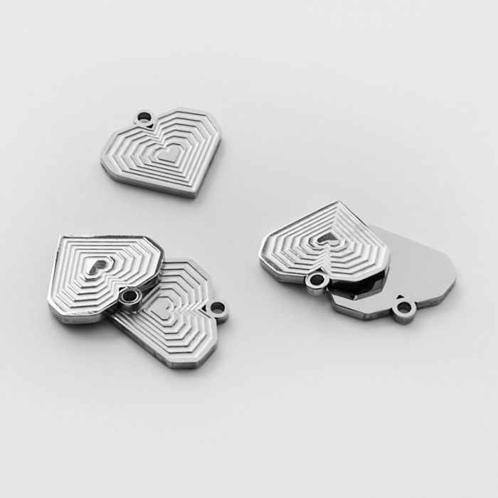Zawieszka ze stali chirurgicznej grawerowana serce kwadratowe w kolorze srebrnym 14mm