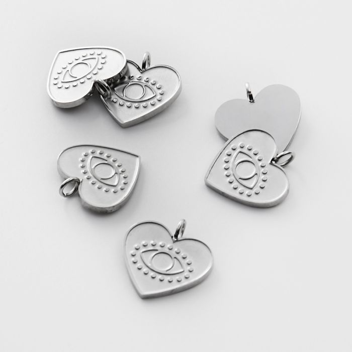 Zawieszka ze stali chirurgicznej grawerowana serce z oczkiem w kolorze srebrnym 15,5mm