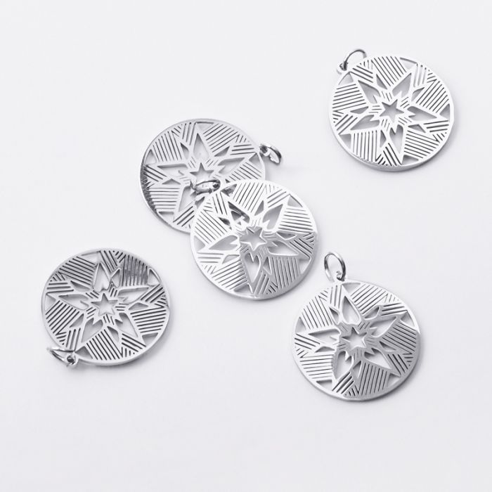 Zawieszka ze stali chirurgicznej Gwiazda z promieniami do naszyjników w kolorze srebrnym 22mm