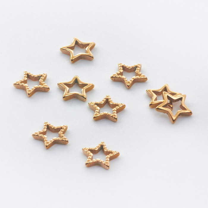Zawieszka ze stali chirurgicznej gwiazdka w kolorze złotym 7mmTo trwały element biżuterii lub półfabrykat jubilerski, który dobrze sprawdza się w codziennych realizacjach. W biżuterii handmade stal chirurgiczna jest ceniona za dobry wygląd, odporność na korozję i wygodę codziennego użytkowania.Zawieszka ze stali chirurgicznej to dekoracyjny element, który nadaje biżuterii charakteru i pozwala tworzyć spersonalizowane projekty. Świetnie sprawdza się w naszyjnikach, bransoletkach, kolczykach oraz drobnych charmsach.Forma lub motyw gwiazdka oraz rozmiar 7mm sprawiają, że element pasuje do delikatnych bransoletek, kolczyków i subtelnych naszyjników, a kolor złoty dobrze komponuje się z innymi stalowymi dodatkami.To detal, który może pełnić rolę subtelnej ozdoby lub głównego akcentu całego projektu.Dlaczego warto?• Stal chirurgiczna – trwała, odporna na korozję i odpowiednia do codziennego użytkowania.• Kolor złoty – łatwo dopasować do innych metalowych elementów biżuterii.• Rozmiar 7mm – odpowiedni do planowanego projektu.• Starannie wykonany detal – estetyczne wykończenie w projektach handmade.• Dekoracyjny akcent – łatwo dopasujesz go do stylu całego projektu.Zastosowanie:• naszyjniki z motywem ozdobnym• bransoletki z charmsami• kolczyki• personalizowane projekty handmadeFAQ – najczęstsze pytania1. Czy stal chirurgiczna rdzewieje lub ciemnieje?– Stal chirurgiczna jest odporna na korozję i dobrze znosi codzienne użytkowanie. Aby jak najdłużej zachowała estetyczny wygląd, warto unikać długiego kontaktu z agresywną chemią.2. Czy stal chirurgiczna nadaje się do codziennego użytkowania?– Tak, stal chirurgiczna jest chętnie wybierana do biżuterii noszonej na co dzień, ponieważ łączy trwałość z estetycznym wyglądem.3. Czy elementy ze stali chirurgicznej można łączyć z innymi półfabrykatami?– Tak, stal chirurgiczna dobrze komponuje się z kamieniami, perłami, sznurkami, łańcuszkami i innymi elementami wykorzystywanymi w biżuterii handmade.4. Czy kolor złoty w stali chirurgicznej zawsze jest wykonywany tą samą metodą?– Nie. W zależności od produktu kolor złoty może być uzyskany różnymi metodami, dlatego informację o wykończeniu warto sprawdzać w danych konkretnego produktu.5. Do jakich projektów nadają się elementy ze stali chirurgicznej?– Stal chirurgiczna sprawdza się w naszyjnikach, bransoletkach, kolczykach, zawieszkach oraz wielu innych projektach biżuterii handmade.zawieszka gwiazdka w kolorze złoty to praktyczny i estetyczny element, który pomoże Ci stworzyć dopracowaną biżuterię handmade. Dodaj go do koszyka i wykorzystaj w swoim kolejnym projekcie.*Uwaga!Produkt przeznaczony do wykonywania rękodzieła, w tym biżuterii i innych ozdób. Produkt nie jest przeznaczony dla dzieci i zwierząt. Produkt nie jest przeznaczony do spożycia. Podczas używania produktu zalecamy stosowanie sprzętu ochronnego np. okularów ochronnych, rękawic. Produkt należy przechowywać poza zasięgiem dzieci oraz zwierząt domowych, a także stosować zgodnie z jego przeznaczeniem. Małe elementy stanowią zagrożenie uduszenia w przypadku połknięcia.