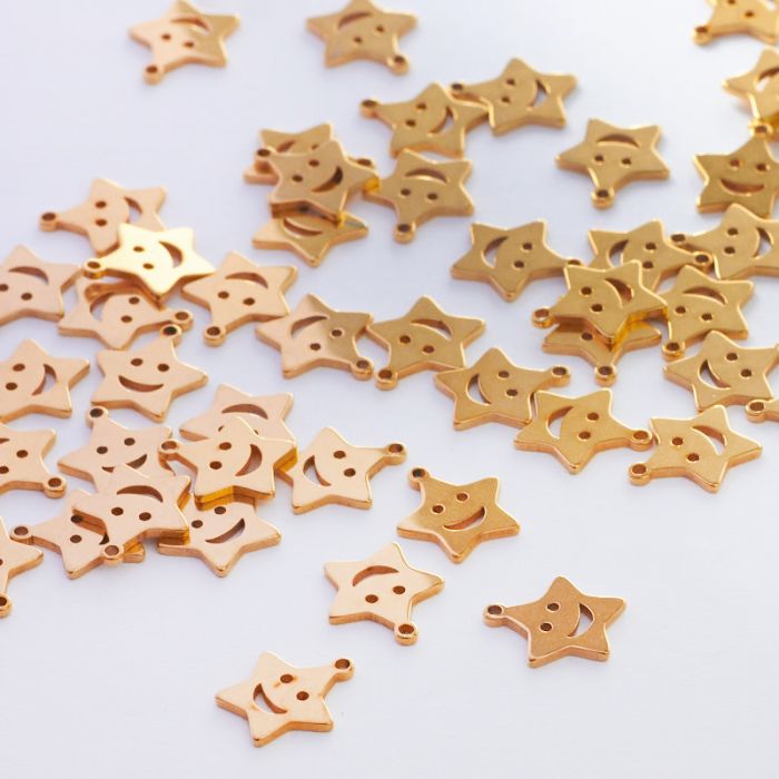 Zawieszka ze stali chirurgicznej gwiazdka z uśmiechem w kolorze złotym 10mm