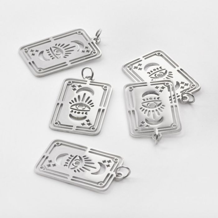 Zawieszka ze stali chirurgicznej karta w kolorze srebrnym 28mm