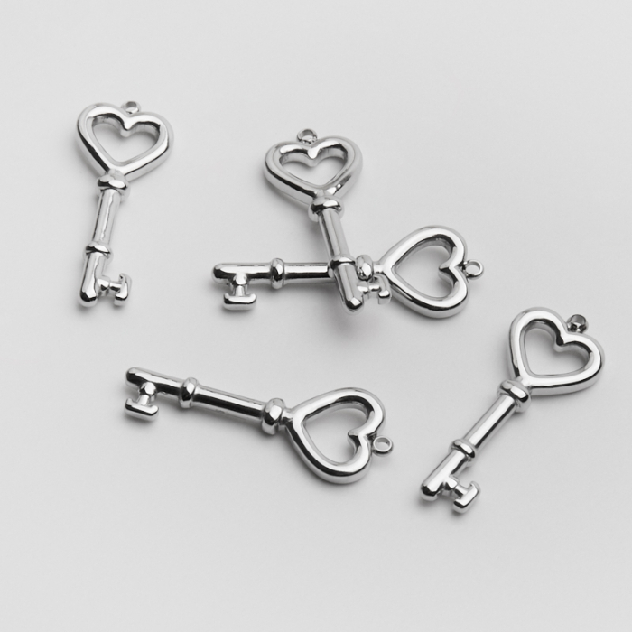 Zawieszka ze stali chirurgicznej kluczyk w kolorze srebrnym 30mmTo trwały element biżuterii lub półfabrykat jubilerski, który dobrze sprawdza się w codziennych realizacjach. To materiał chętnie wybierany do biżuterii handmade ze względu na trwałość, estetykę i wygodę użytkowania.Zawieszka ze stali szlachetnej to dekoracyjny element, który nadaje biżuterii charakteru i pozwala tworzyć spersonalizowane projekty. Świetnie sprawdza się w naszyjnikach, bransoletkach, kolczykach oraz drobnych charmsach.Forma lub motyw