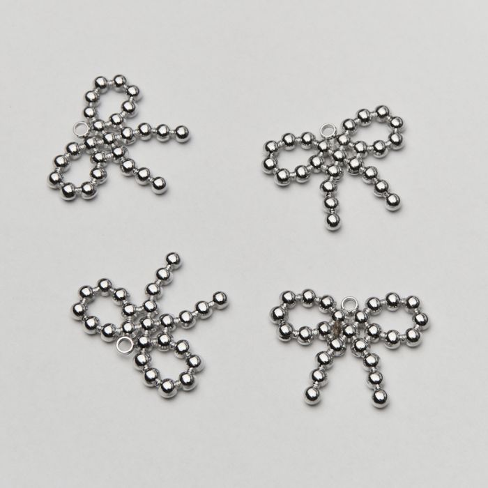 Zawieszka ze stali chirurgicznej kokardka z kulek w kolorze srebrnym 19,5mm
