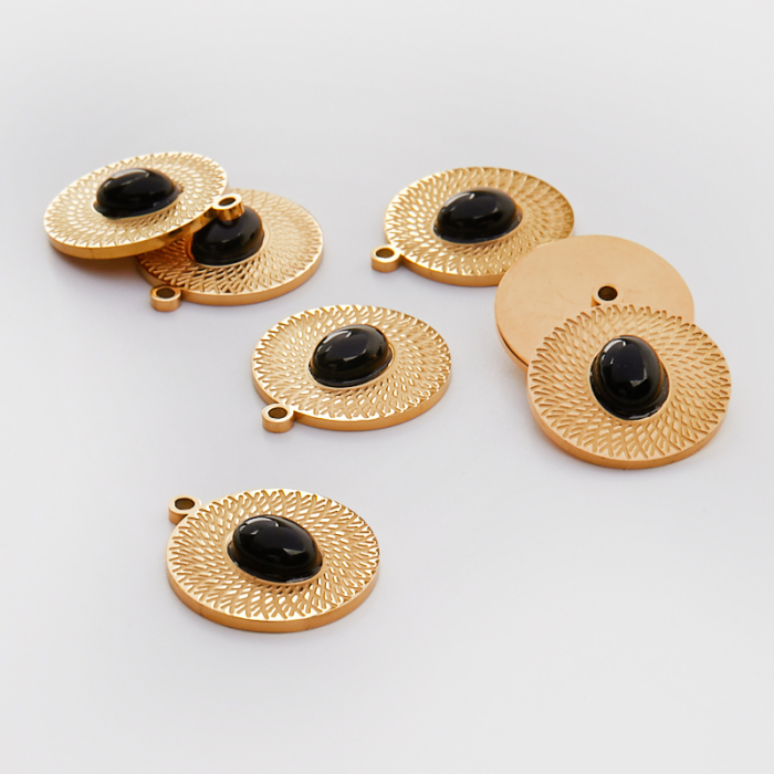 Zawieszka ze stali chirurgicznej kółko nacinane z onyksem w kolorze złotym 21mm PVD