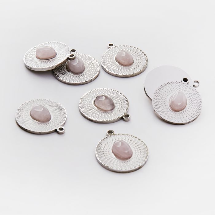 Zawieszka ze stali chirurgicznej kółko nacinane z różowym kryształem górskim w kolorze srebrnym 21mm