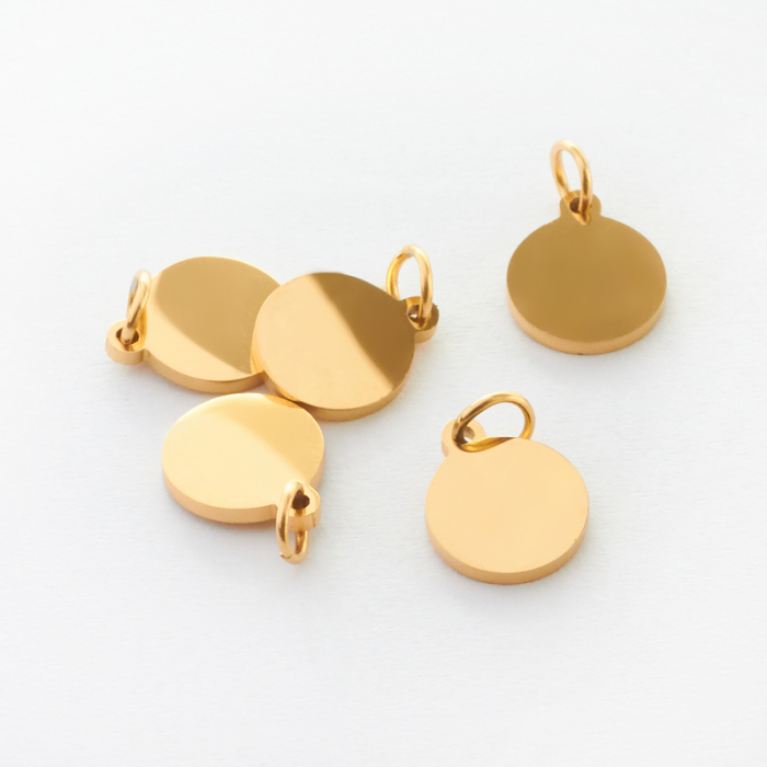 Zawieszka ze stali chirurgicznej kółko w kolorze złotym 8mmTo estetyczny element biżuteryjny ze stali szlachetnej, chętnie wybierany do nowoczesnych projektów. Stal szlachetna dobrze sprawdza się w biżuterii noszonej na co dzień, ponieważ łączy trwałość z estetycznym wykończeniem.Zawieszka ze stali szlachetnej to dekoracyjny element, który nadaje biżuterii charakteru i pozwala tworzyć spersonalizowane projekty. Świetnie sprawdza się w naszyjnikach, bransoletkach, kolczykach oraz drobnych charmsach.Forma lub motyw