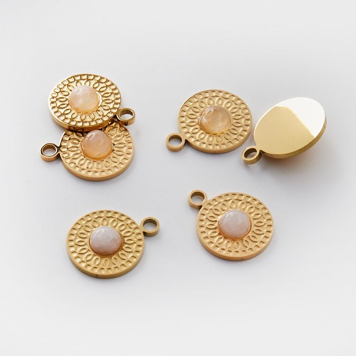 Zawieszka ze stali chirurgicznej kółko z kryształem górskim różowym w kolorze złotym 19mm PVD