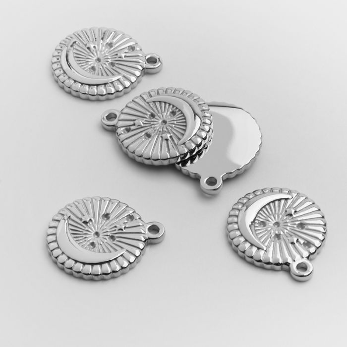 Zawieszka ze stali chirurgicznej kółko z księżycem w kolorze srebrnym 18mm