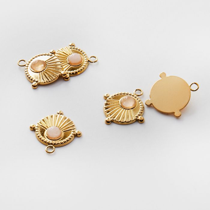 Zawieszka ze stali chirurgicznej kółko z wypustkami z różowym kryształem górskim w kolorze złotym 17,5mm PVD