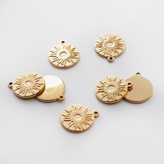 Zawieszka ze stali chirurgicznej kółko ze słońcem w kolorze złotym 15,5mm PVD