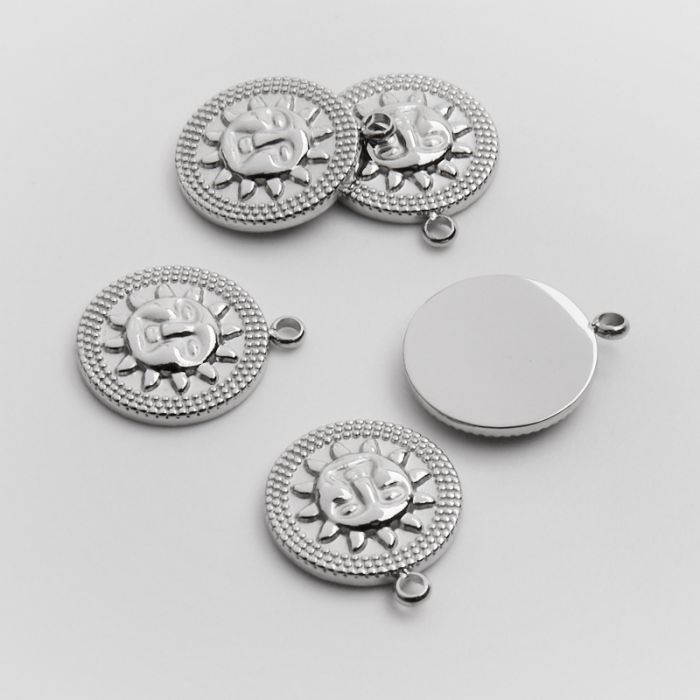 Zawieszka ze stali chirurgicznej kółko ze słoneczkiem w kolorze srebrnym 15mm