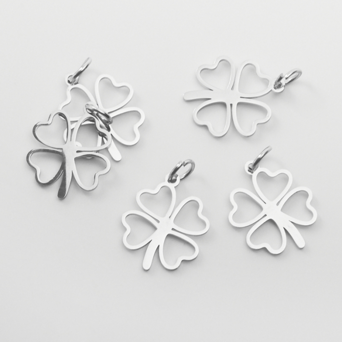Zawieszka ze stali szlachetnej koniczynka w kolorze srebrnym 21mmTo trwały element biżuterii lub półfabrykat jubilerski, który dobrze sprawdza się w codziennych realizacjach. To materiał chętnie wybierany do biżuterii handmade ze względu na trwałość, estetykę i wygodę użytkowania.Stal szlachetna to materiał ceniony za trwałość i estetyczny wygląd w codziennym użytkowaniu.W tym produkcie zastosowano stal szlachetną