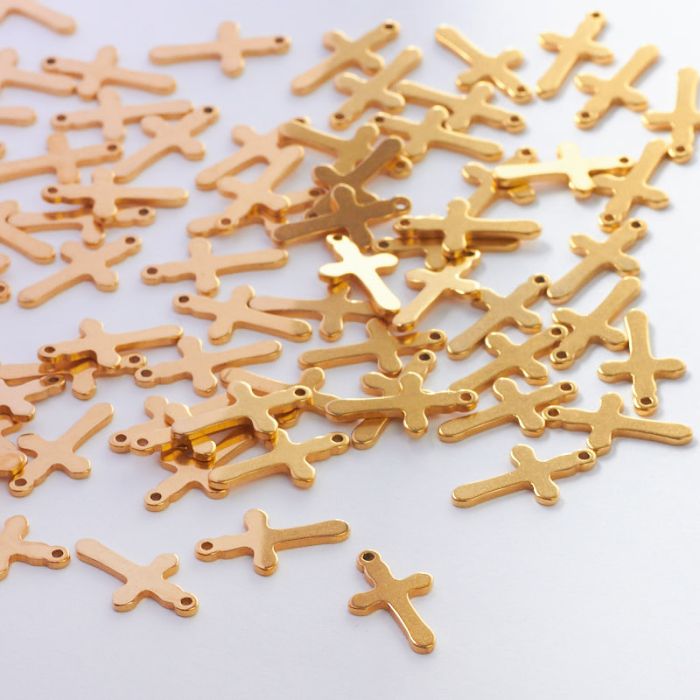 Zawieszka ze stali chirurgicznej krzyż w kolorze złotym 16mm