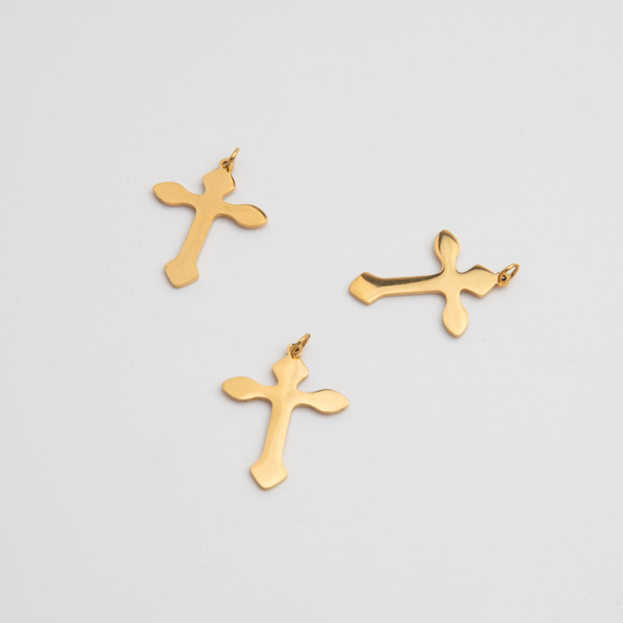 Zawieszka ze stali szlachetnej krzyż w kolorze złotym 25mmTo dopracowany produkt ze stali szlachetnej, który łączy praktyczność z estetycznym wyglądem. To materiał chętnie wybierany do biżuterii handmade ze względu na trwałość, estetykę i wygodę użytkowania.Stal szlachetna to materiał ceniony za trwałość i estetyczny wygląd w codziennym użytkowaniu.W tym produkcie zastosowano stal szlachetną