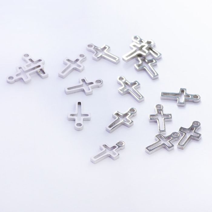 Zawieszka ze stali chirurgicznej krzyż wycięty w kolorze srebrnym 11,5mm