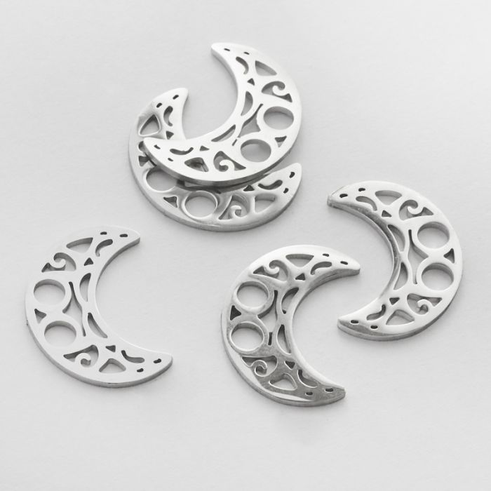Zawieszka ze stali chirurgicznej księżyc ażurowy w kolorze srebrnym 10mm