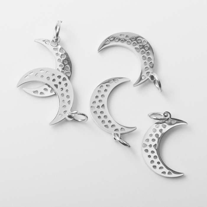 Zawieszka ze stali szlachetnej księżyc w kolorze srebrnym 14mmTo starannie wykonany produkt ze stali szlachetnej, który dobrze prezentuje się w codziennym użytkowaniu. W biżuterii handmade stal szlachetna jest ceniona za dobry wygląd, odporność na korozję i wygodę codziennego użytkowania.Stal szlachetna to materiał ceniony za trwałość i estetyczny wygląd w codziennym użytkowaniu.W tym produkcie zastosowano stal szlachetną