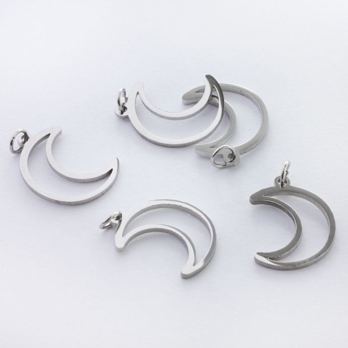 Zawieszka ze stali chirurgicznej księżyc wycięty kolor w kolorze srebrnym 17,5mm