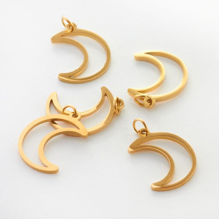 Zawieszka ze stali chirurgicznej księżyc wycięty w kolorze złotym 17,5mm