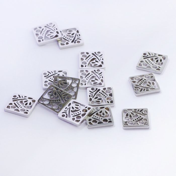 Zawieszka ze stali chirurgicznej kwadrat ażurowy w kolorze srebrnym 8mm
