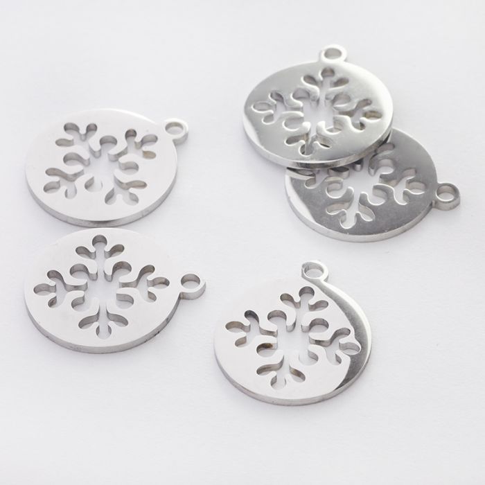 Zawieszka ze stali chirurgicznej kwiatek w kółku w kolorze srebrnym 15mm