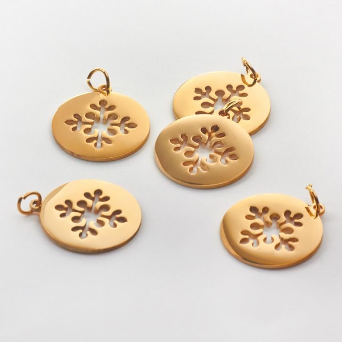 Zawieszka ze stali chirurgicznej kwiatek w kółku w kolorze złotym 22mm