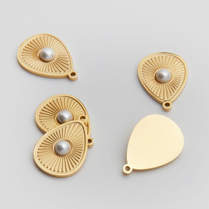 Zawieszka ze stali chirurgicznej łezka z perłą w kolorze złotym 18mm PVD