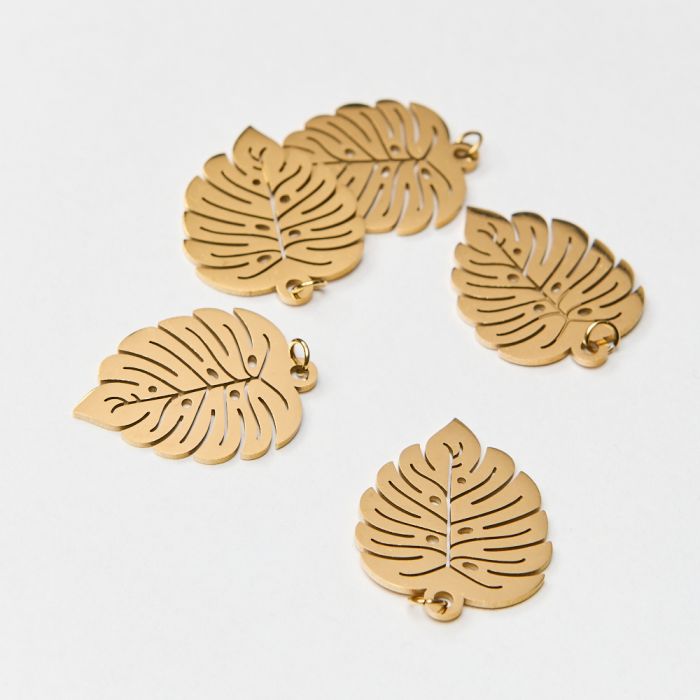 Zawieszka ze stali chirurgicznej liść monstery do naszyjnika w kolorze złotym 26mm PVD