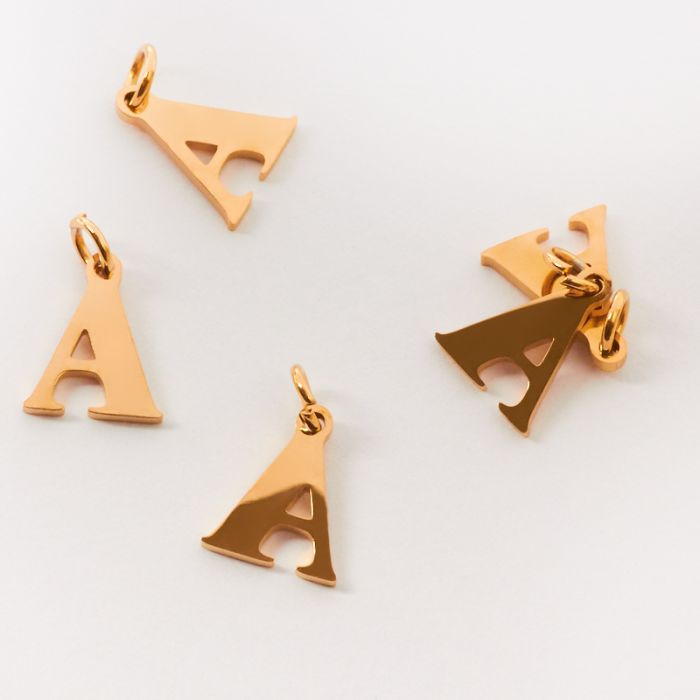 Zawieszka ze stali chirurgicznej literka A w kolorze złotym 12mm