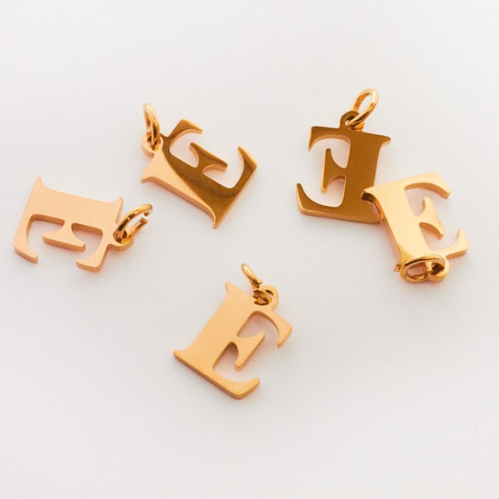 Zawieszka ze stali chirurgicznej literka E w kolorze złotym 8mm