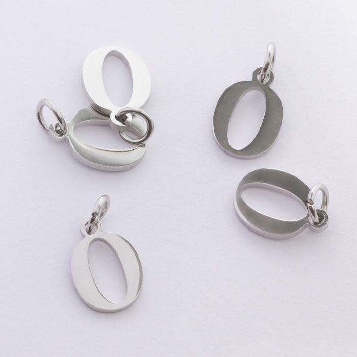 Zawieszka ze stali chirurgicznej literka O w kolorze srebrnym 8mm