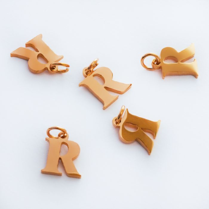 Zawieszka ze stali chirurgicznej literka R w kolorze złotym 8mm