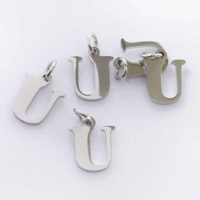 Zawieszka ze stali chirurgicznej literka U w kolorze srebrnym 8mm
