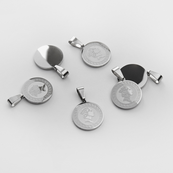 Zawieszka ze stali chirurgicznej moneta z Królową Elżbietą w kolorze srebrnym 16,5mm