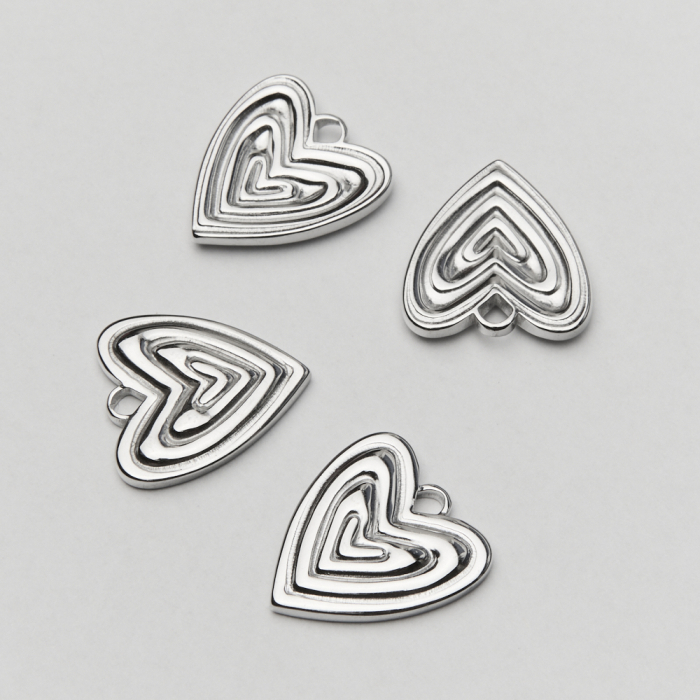 Zawieszka ze stali chirurgicznej multi serce w kolorze srebrnym 19mmTo dopracowany produkt ze stali chirurgicznej 316L, który łączy praktyczność z estetycznym wyglądem. W biżuterii handmade stal chirurgiczna 316L jest ceniona za dobry wygląd, odporność na korozję i wygodę codziennego użytkowania.Zawieszka ze stali chirurgicznej 316L to dekoracyjny element, który nadaje biżuterii charakteru i pozwala tworzyć spersonalizowane projekty. Świetnie sprawdza się w naszyjnikach, bransoletkach, kolczykach oraz drobnych charmsach.Forma lub motyw