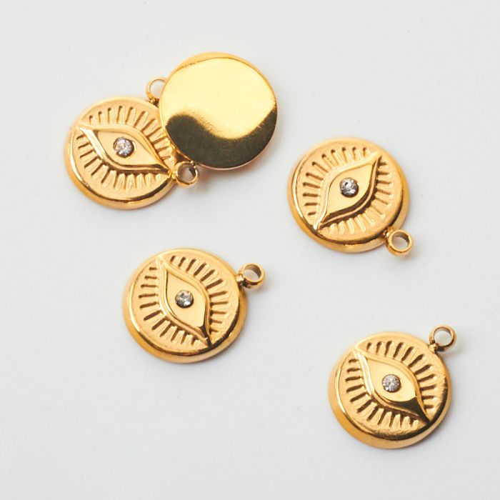 Zawieszka ze stali chirurgicznej oko proroka z cyrkonią w kolorze złotym 8,5mm