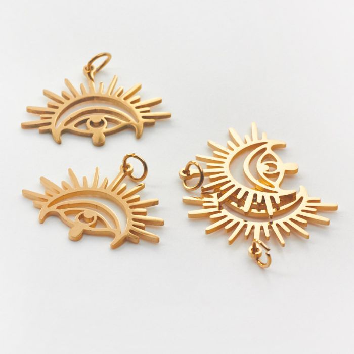 Zawieszka ze stali chirurgicznej oko proroka ze słońcem w kolorze złotym 13mm PVD