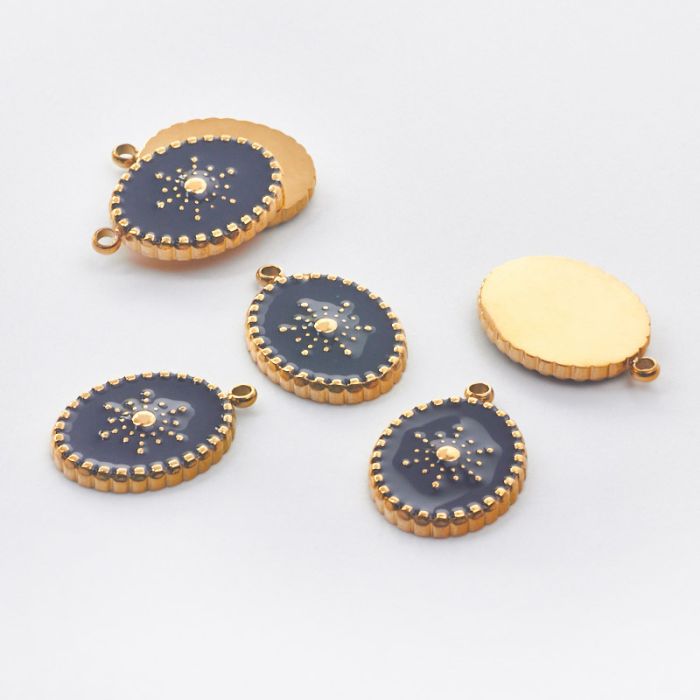 Zawieszka ze stali chirurgicznej owal z czarną emalią w kolorze złotym 18mm