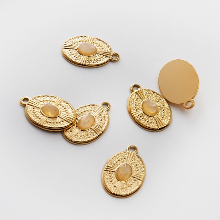 Zawieszka ze stali chirurgicznej owal z kryształem górskim w kolorze złotym 21mm PVD