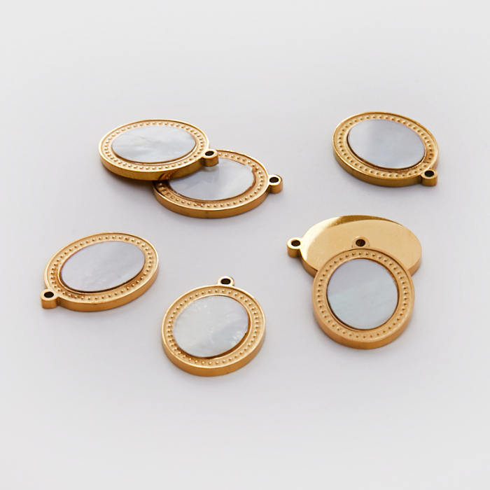 Zawieszka ze stali chirurgicznej owal z masą perłową w kolorze złotym 16mm PVD