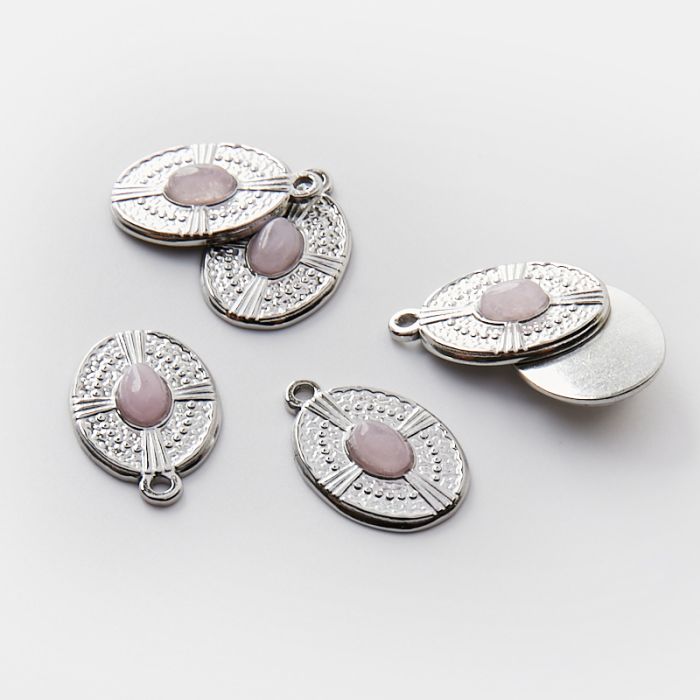Zawieszka ze stali chirurgicznej owal z różowym kryształem górskim w kolorze srebrnym 21mm