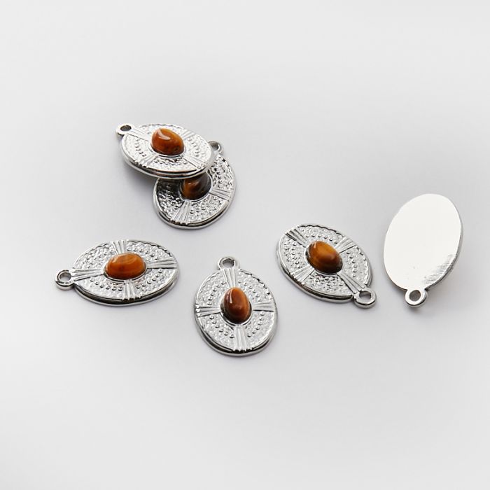Zawieszka ze stali chirurgicznej owal z tygrysim okiem w kolorze srebrnym 21mm